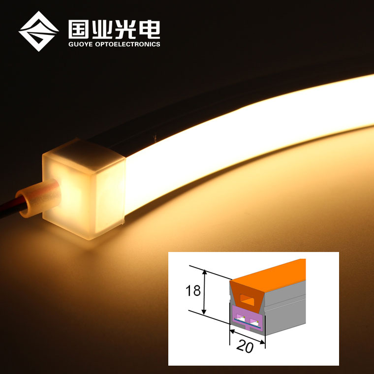 Guoye Optoelectronics is China manufacturer & supplier who mainly produces 12V RGB LED Neon Flex Rope Light with many years of experience. Hope to build business relationship with you.led neon flex 12V Size 20*18mm is flat top light view emitting. Waterproof IP67 can be use in outdoor, power 15W per meter, Soft body can be up or down bending to arc-shaped, wave-shaped, Corner. Color offer with warm white 3000K nature 4000K pure 6000K and other single color RGB RGBW color also. Welcome to contact us for the latest product specifications and long-term cooperation in future.