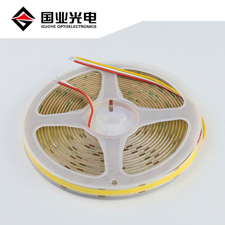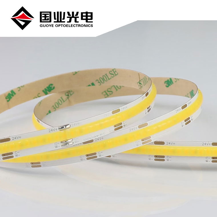 Guoye Optoelectronics is COB CCT led strip producer and supplier in China Shenzhen. COB CCT is new flexible strip light with dimmable adjustable double color 2700K and 6500K, not light spots, consistent light from start to finish. It is seamless uninterrupted lighting, and perfect for high-end professional and commercial installations.