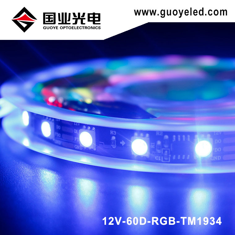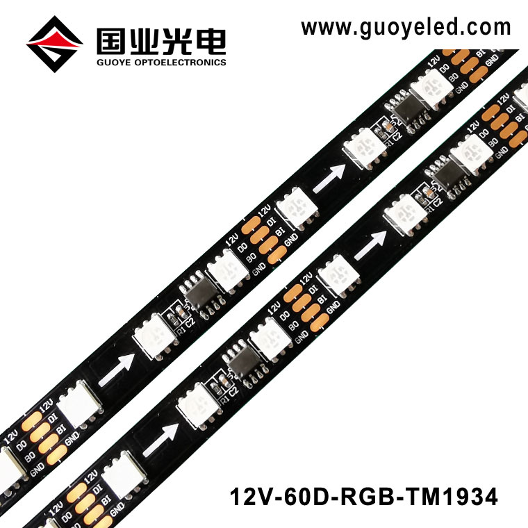 TM1934 Pixel led strip is an external intelligent IC chip LED light, which has the function of continuous breakpoint transmission. It adopts parallel dual signal transmission mode and adds one more signal line on the original basis. In the case of single pixel damage, the overall color effect will not be affected. TM1934 Addressable digital LED tape, 60LED /m, external built-in control IC, 12V/24V, 14.4W /m, 10mm white or black PCB, 15cm JST connector; Super bright 5050 patch top LED, high strength, high reliability